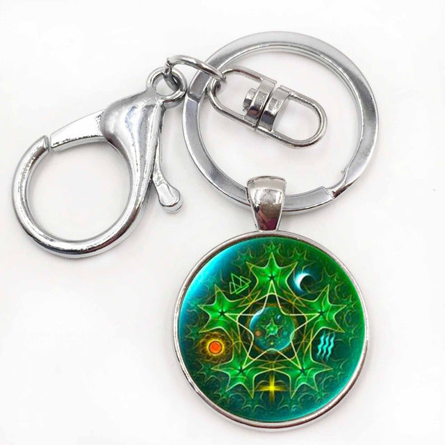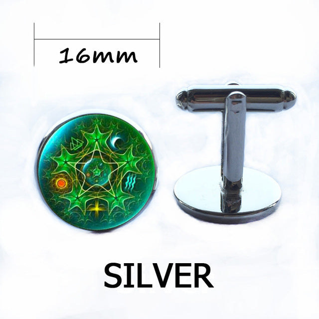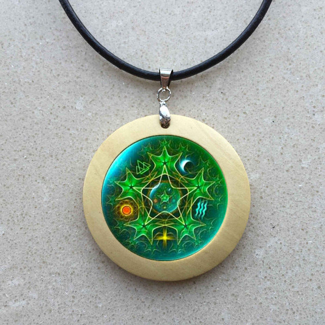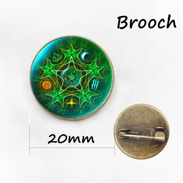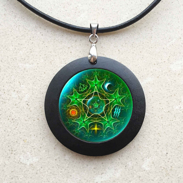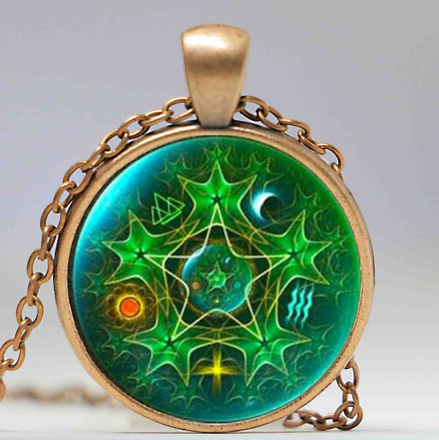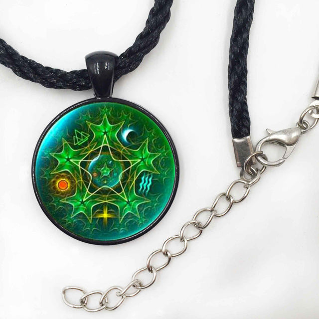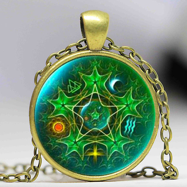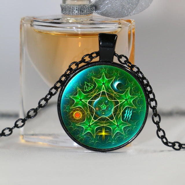 Glass Cabochon Pendant Necklace Wicca Silver Necklace