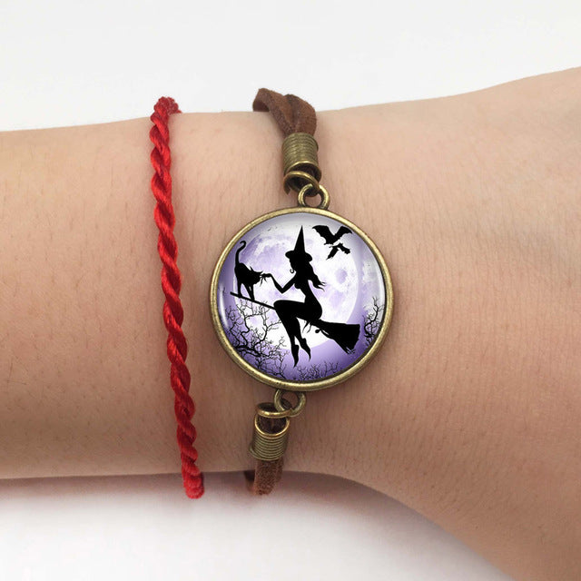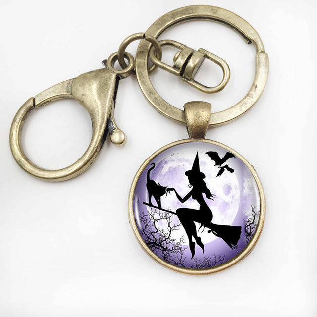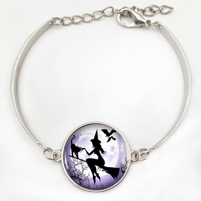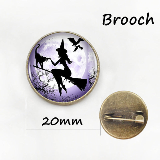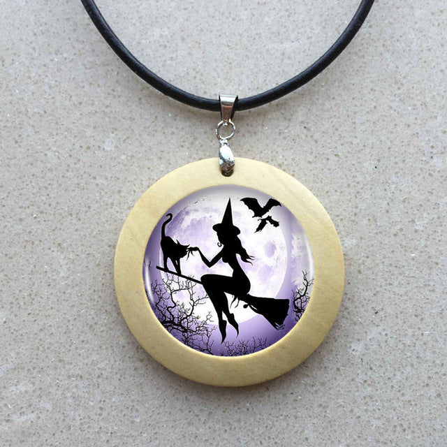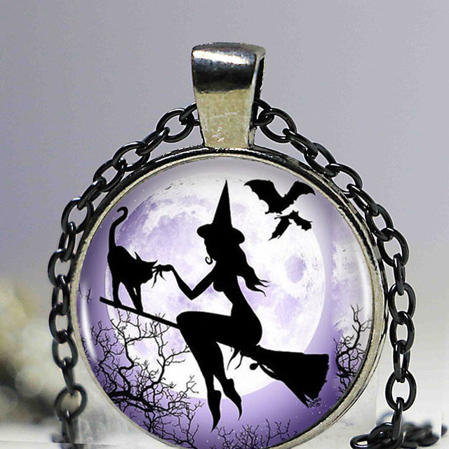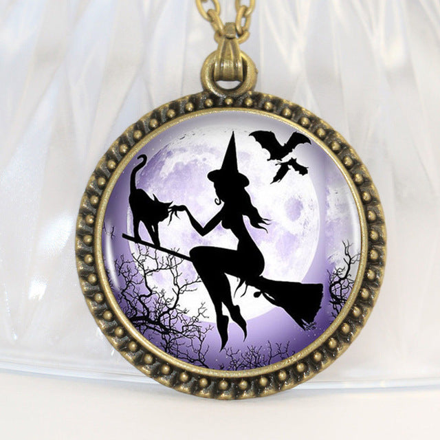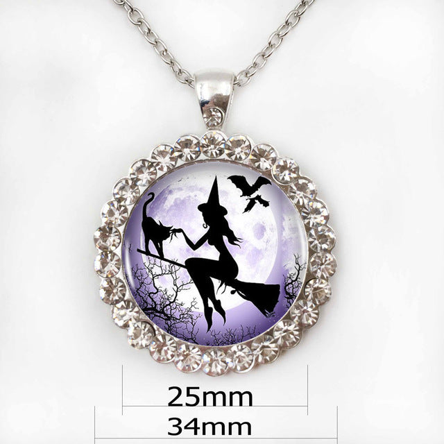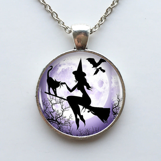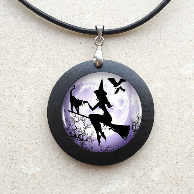 Witch Round Pendant Choker Silver Necklace